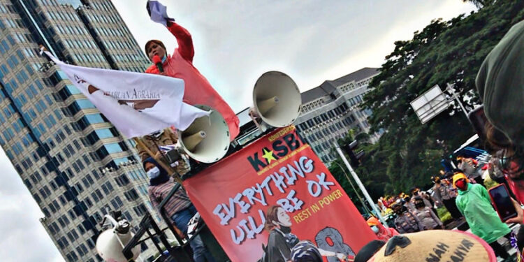Aksi mereka yang dihadiri kurang lebih 500-an orang ini cukup dramatis. Selain diguyur hujan ketika longmarch, massa juga kerap diingatkan petugas kepolisian soal protokol kesehatan di masa pandemi, khususnya menjaga jarak.