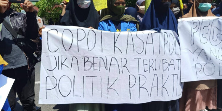Bulukumba (PARADE.ID)- Puluhan orang dari Pergerakan Mahasiswa Islam Indonesia (PMII) melakukan aksi unjuk rasa terkait adanya dugaan Aparatur Sipil Negara (ASN) yang tidak Netral pada saat kampanye dan terlibat politik praktis. B