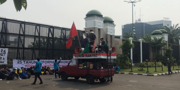 Jakarta (parade.id)- Kemarin, Ahad (21/5/2023) mahasiswa dari puluhan organisasi kampus melakukan aksi simbolik memperingati 25 tahun reformasi di depan gedung DPR RI, Jakarta.