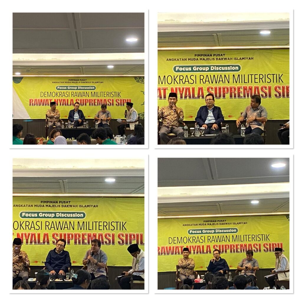 Jakarta (parade.id)- Pengurus Pusat Angkatan Muda Majelis Dakwah Islamiyah (PP AMMDI) menyelenggarakan Focus Group Discussion (FGD) bertajuk “Demokrasi Rawan Militeristik-Rawat Nyala Supremasi Sipil”, Senin (17/11/2025), di Jakarta. Forum ini mengetengahkan keprihatinan mendalam terhadap menguatnya jejak militer dan polisi dalam ranah sipil, yang dinilai mengancam fondasi demokrasi Indonesia pasca putusan Mahkamah Konstitusi (MK) dan di awal pemerintahan Presiden Prabowo Subianto.