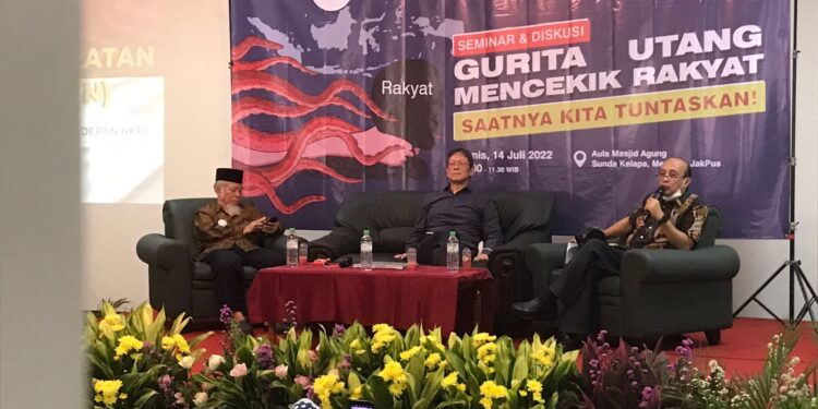 “Hingga kini, di dua periodenya, ULN Indonesia meningkat. Kalau diasumsikan sehari, kita mempunyai utang Rp1,6 triliun,” ujarnya, di diskusi “Gurita Utang Mencekik Rakyat, Saatnya Kita Tuntaskan”, yang diadakan oleh Front Kedaulatan Negara (FKN), Kamis (14/7/2022), di Jakarta.