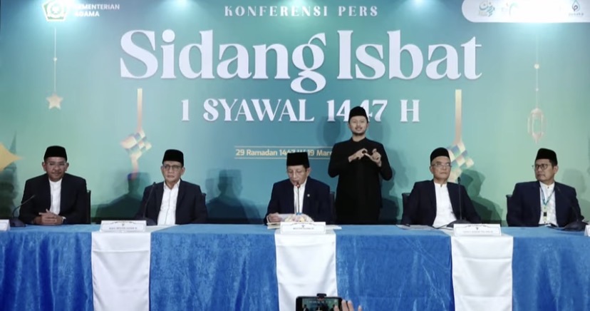 “Berdasarkan hasil hisab serta tidak adanya laporan hilal terlihat, disepakati bahwa 1 Syawal 1447 Hijriah jatuh pada hari Sabtu, 21 Maret 2026,” ujar Nasaruddin dalam konferensi pers.