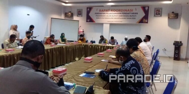 Pangkep (PARADE.ID)- Hari ini, Kamis (27/8/2020), KPUD Pangkep melaksanakan Rapat Koordinasi dalam rangka persiapan pendaftaran pasangan calon (paslon) Bupati dan Wakil Bupati Kab. Pangkep Tahun 2020. Rapat dipimpin oleh Burhan ASH selaku Ketua Kab. Pangkep.