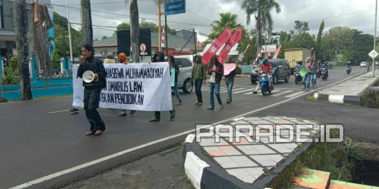 Sinjai (PARADE.ID)- Belasan massa dari Aliansi Mahasiswa Muhammadiyah melaksanakan aksi unjuk rasa terkait penolakannya terhadap RUU Omnibus Law. Massa meminta agar RUU tersebut dibatalkan.