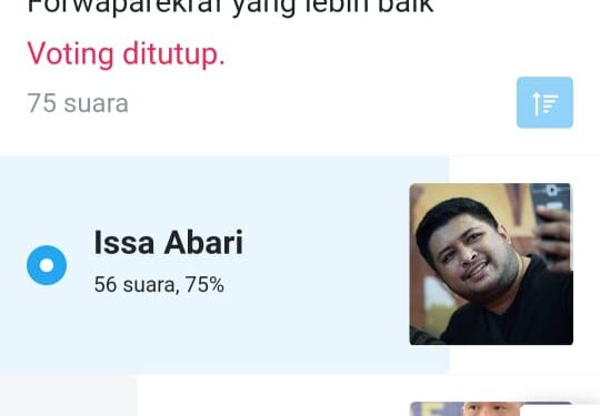 Hasilnya, Issa dengan nomor urut 1 memperoleh 56 suara. Sedangkan Johan dengan nomor urut 2 cuma mengantongi 17 suara dan sisanya 2 suara abstain. Total jumlah suara yang sah sebanyak 75 dan tidak sah 0.