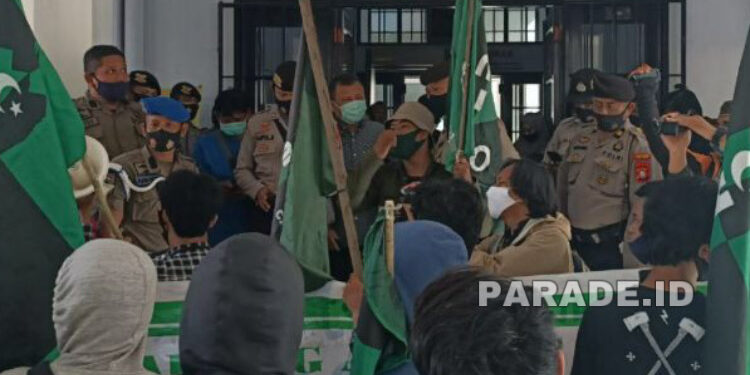 Makassar (PARADE.ID)- Puluhan orang yang mengatasnamakan Aliansi Pemuda dan Mahasiswa Sangkarrang di Makassar melakukan unjuk rasa terkait penolakannya terhadap penambangan pasir di pulau Sangkarang. Unjuk rasa atau penyampaian pendapat berlangsung di kantor Wali Kota Makassar, Sulsel.