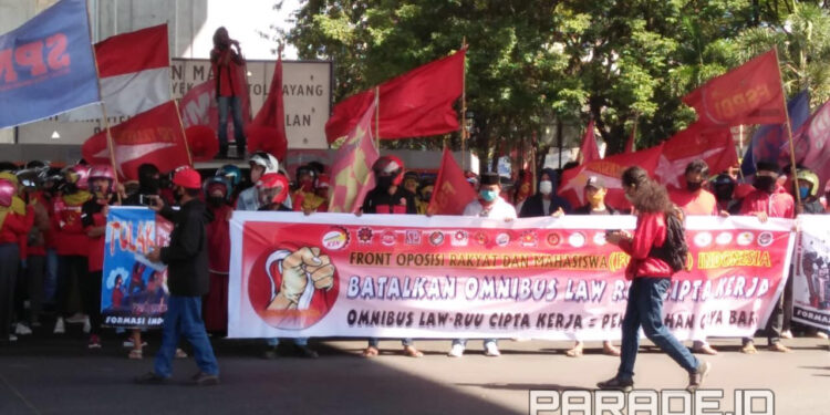 Makassar (PARADE.ID)- Ratusan massa yang mengatasnamakan Front Oposisi Rakyat, Mahasiswa (FORMASI) Indonesia dan Aliansi Strategis Multisektor Gerakan Rakyat melakukan aksi terkait penolakannya terhadap RUU Omnibus Law.