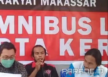 Makassar (PARADE.ID)- Sejumlah orang yang tergabung dalam Gerakan Rakyat (Gerak) Makassar melakukan konferensi pers terkait penolakannya terhadap RUU Omnibus Law. ...