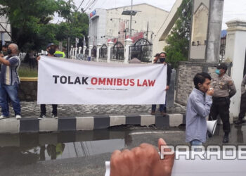 Palu (PARADE.ID)- Puluhan massa yang mengatasnamakan Front Rakyat Tolak Omnibus Law (Frontal) melakukan unjuk rasa terkait penolakannya terhadap RUU Omnibus ...