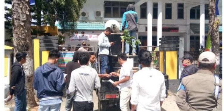 Aksi massa dikomandoi oleh Rahman Paramai. Aksi dilakukan kemarin siang.