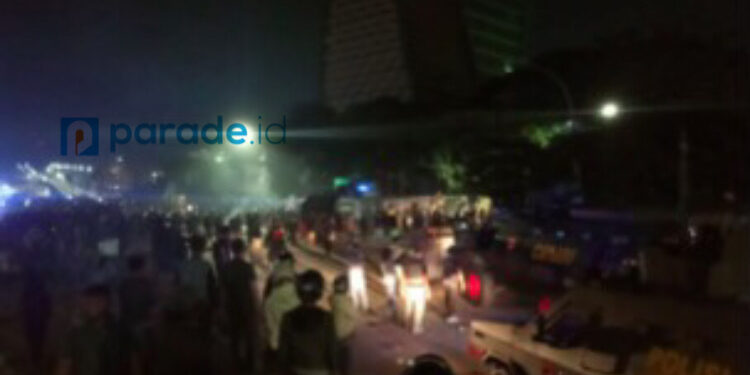 Makassar (PARADE.ID)- Aksi demo mahasiswa dalam menolak pengesahan Omnibus Law UU Cipta Kerja di depan Gedung Phinisi Kampus Universitas Negeri Makassar (UNM), Makassar, Sulawesi Selatan, kembali berujung ricuh pada Kamis (22/10/2020) malam.