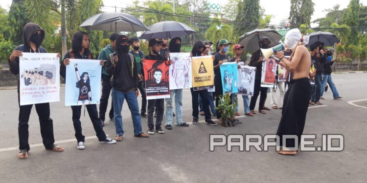 Maros (PARADE.ID)- Puluhan orang yang mengatasnamakan Ok Maros melakukan unjuk rasa di depan kantor Bupati setempat. Aksi unjuk rasa terkait penolakan RUU Omnibus Law Cipta Kerja.