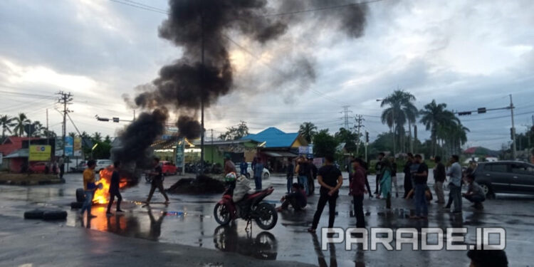 Selain itu, massa juga sempat membakar ban bekas di jalan, yang sekiranya membuat perjalanan umum terganggu.